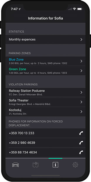 ParkBySMS is an iPhone app, that makes it easy to determine in which zone type you are parked your car and then, to make payment for parking in cities of Bulgaria, Serbia, Croatia, Montnegro, Romania and Greece. WE HAVE CUSTOMERS IN THE FOLLOWING COUNTRIES Bulgaria Russia Italy Austria Germany Greece Luxembourg Spain UK Slovenia Sweden Turkey Belgium Switzerland Hungary USA |